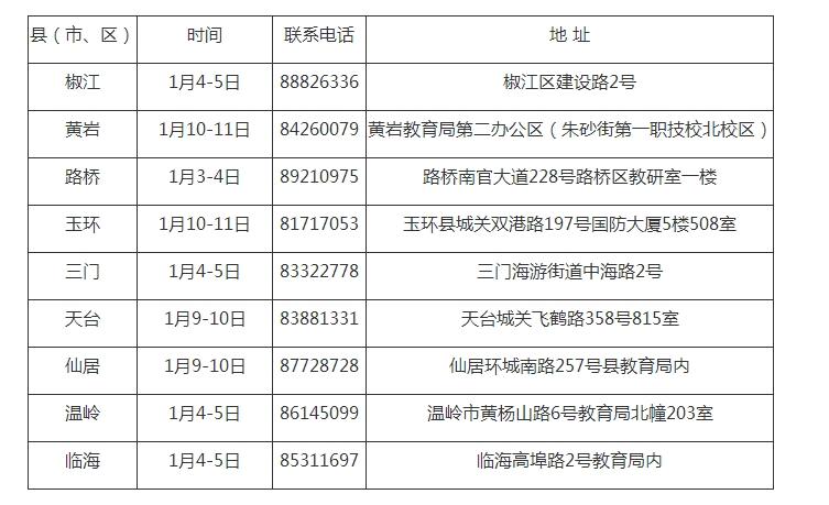 2017年10月浙江省各地报名公告